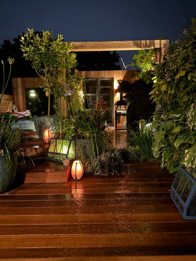The design demonstrates how thoughtful layout and proportion can make a compact garden feel significantly larger. Full hardwood decking was used to unify the space, creating strong visual flow around the pool and into the surrounding zones. A carefully considered planting scheme softens the structure and brings movement, texture and seasonal interest throughout the garden.